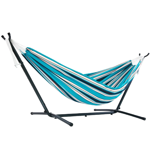 A steel stand + premium hammock engineered for instant comfort—fast setup, rock-solid support, and a lounge-anywhere vibe.